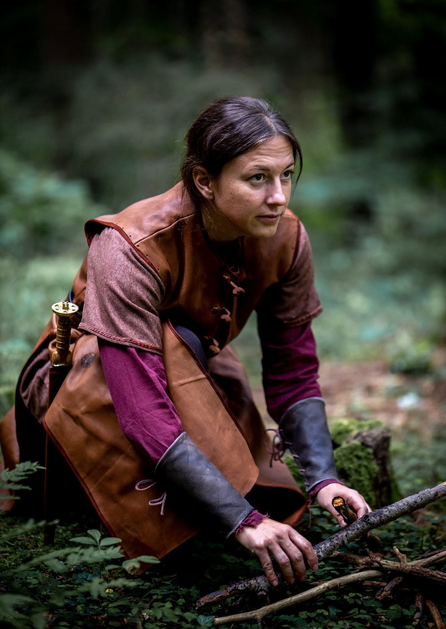 Bei einem Fotoshooting wurde die Kleidung endlich auf ihre Praxistauglichkeit getestet: Der Gürtel befand sich zu diesem Zeitpunkt noch bei einem Freund, der ihn punzierte.